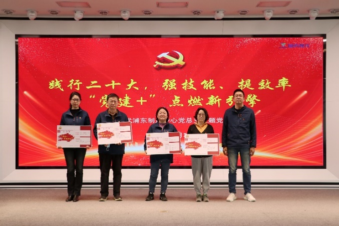 主题党日活动中,播放了近三年来浦东制造中心荣获上级党组织“两优一先”称号的单位和个人的心路历程,领略了同志们岗位建功的风采。会上,还为近期荣获先进的集体和个人颁发了奖状。