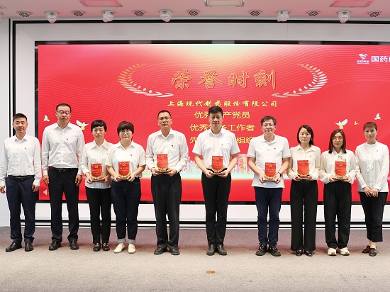 活动现场,国药现代党委对荣获上海市经信委党支部建设示范点的国药现代研究院党支部,以及61名优秀共产党员、14名优秀党务工作者和14个先进基层党组织进行表彰并颁奖。