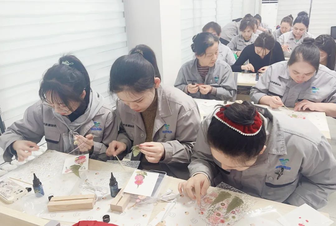 国药川抗为全体女职工准备了精美礼物,并联合当地社区精心组织了掐丝珐琅非遗体验主题活动,在专业老师的讲解指导下,开启了一场铜丝、颜料的指尖艺术盛宴,通过创意构图、掐丝勾勒、上釉点蓝、烘烤定型,一件件精美的掐丝珐琅摆件在大家的巧手下逐渐成形,沉浸式体验了传统文化的魅力。