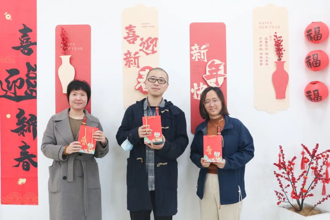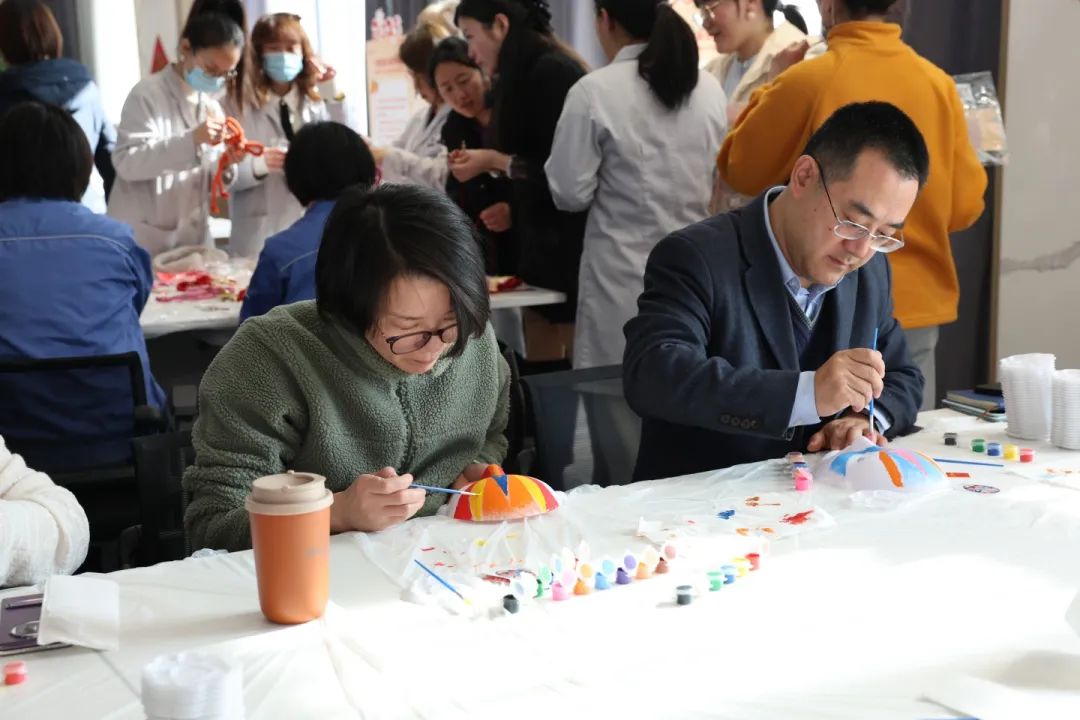 这里:游园会现场,高高挂起的中国结与四周的“福”字春联相映成趣。灯笼、彩带、鲜花,每一处都洋溢着浓浓的新春气息和家的温暖。国药现代党政班子成员来到游园会现场,向辛勤工作的员工们表示亲切慰问,与员工们一同驻足于各非遗游园区域。