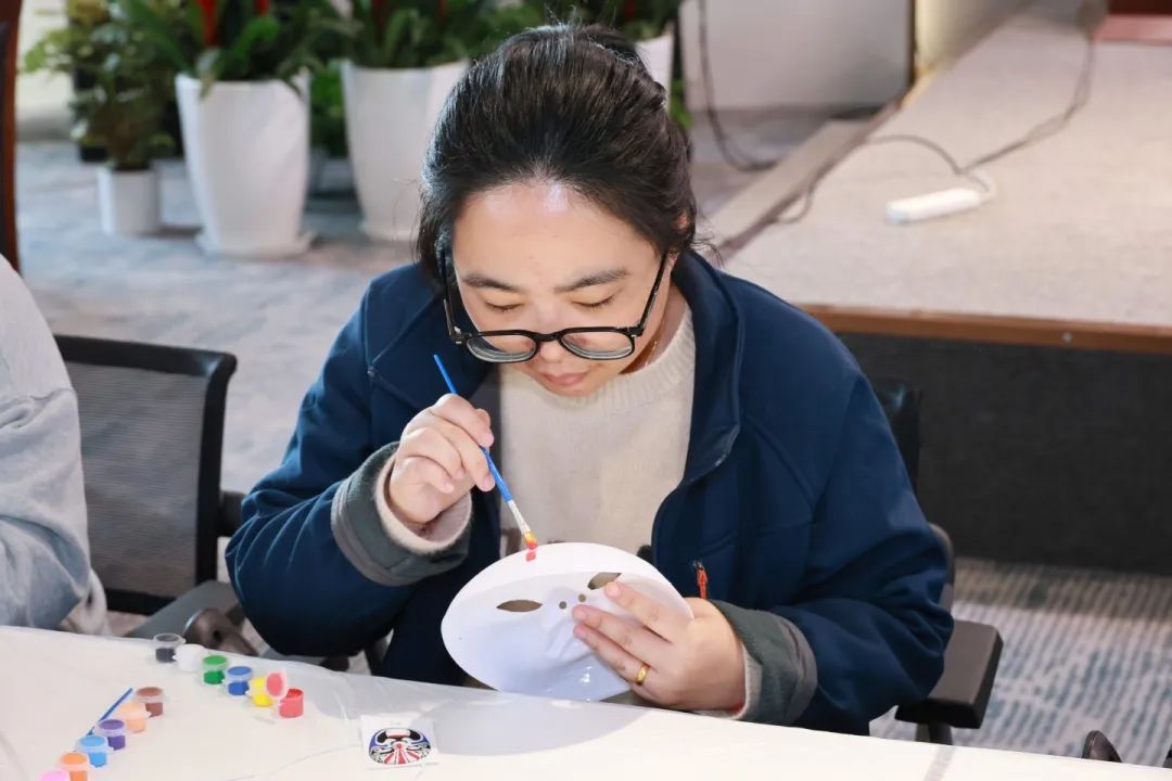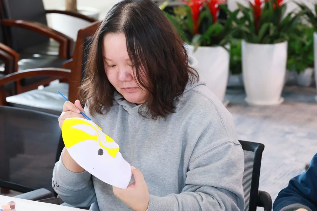 彩绘脸谱区,国粹之美在职工们的笔下绽放。或浓墨重彩,或淡雅清新,一笔一划间勾勒出一幅幅色彩斑斓、生动传神的脸谱,置身于国粹独特魅力中。