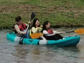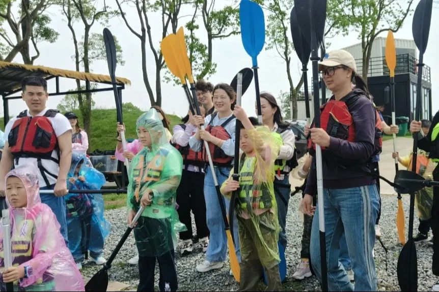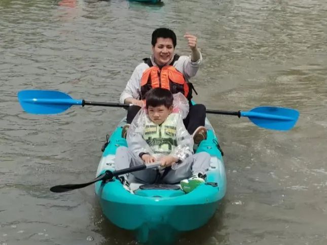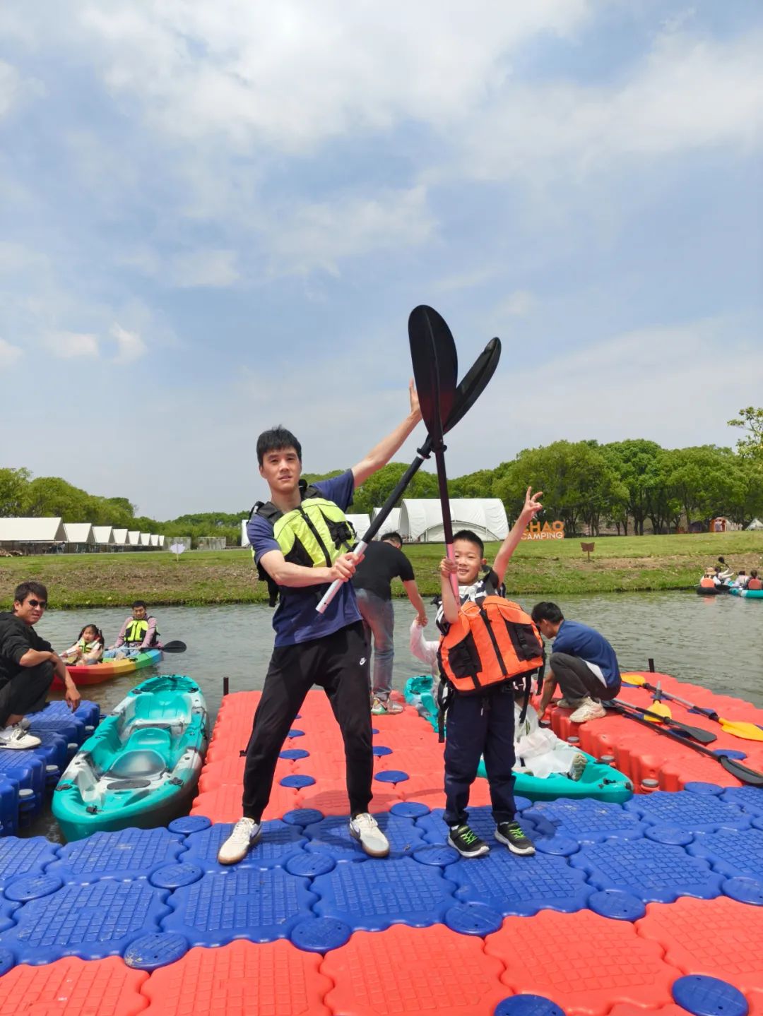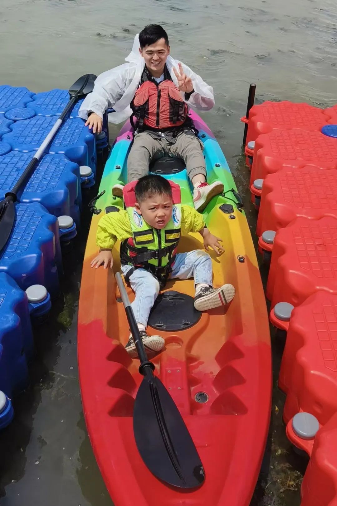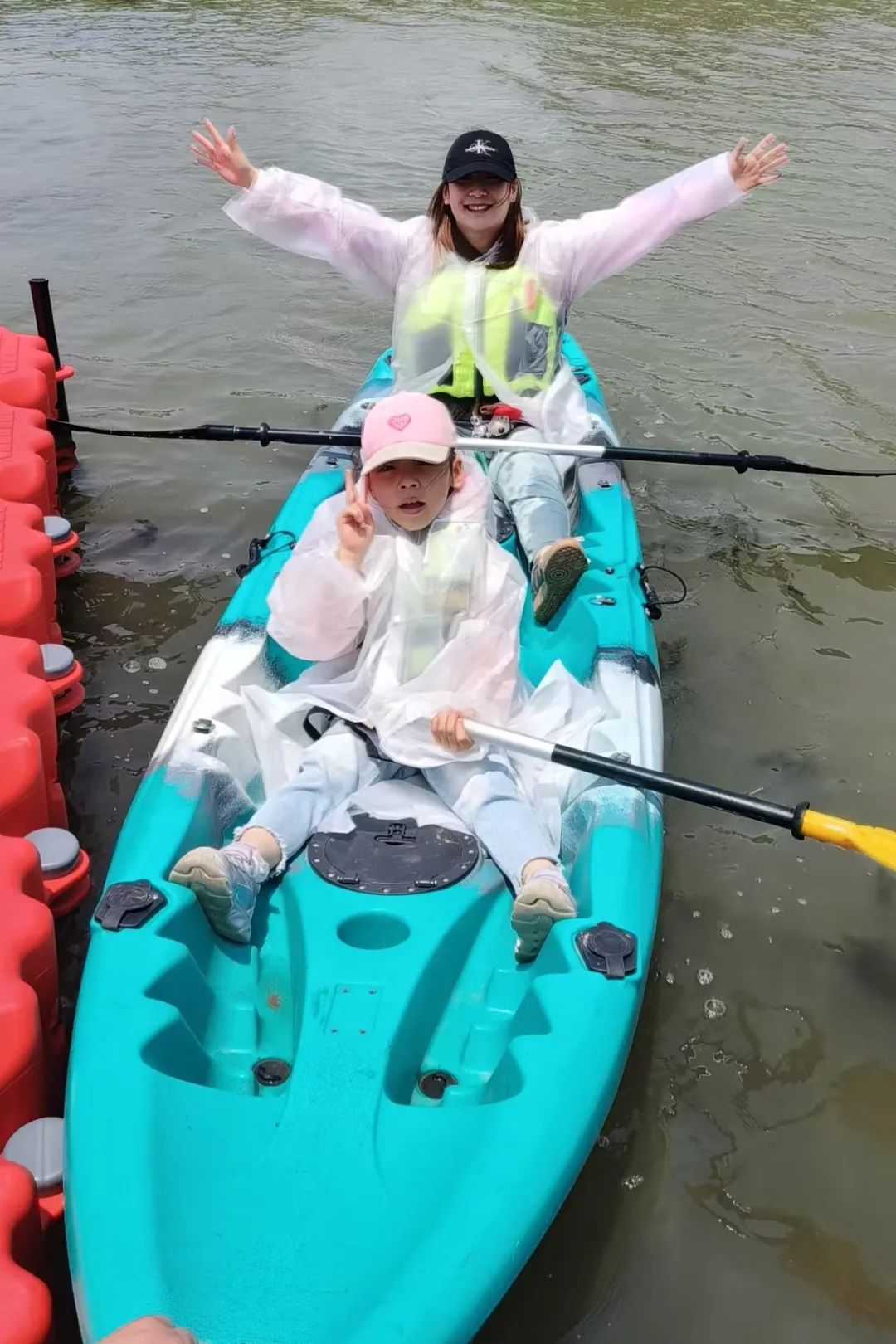 "小船长们,准备启航!"随着教练一声令下,彩色皮划艇如彩虹鱼一只只跃入湖面。孩子们乘坐着皮滑艇,像一群欢快的小鸭子,在家长的陪伴下尽情划桨。微风吹过湖面,小艇像陀螺般在水面打转,溅起的水花惹得岸上的家长笑弯了腰。