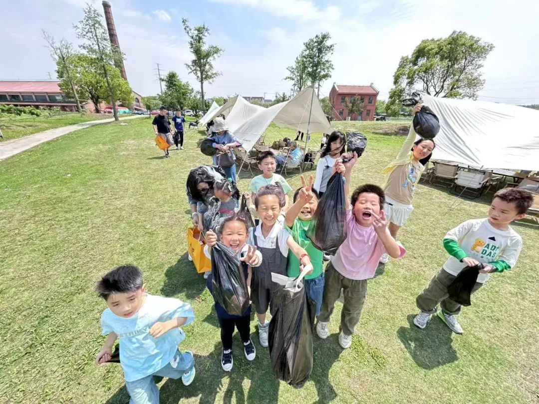 活动尾声,孩子们拎着捧着垃圾袋分散到草坪各处,化身为环保小卫士。有的蹲在花丛边捡起糖果纸,有的踮脚取下树杈间的塑料瓶,还有的把散落的落叶聚成小堆。阳光掠过他们俯身捡拾的身影,将小小的轮廓映在草地上,像一群忙碌的小蚂蚁。当最后一片纸屑被捡起,重新焕发光彩的草坪上,孩子们举着空垃圾袋欢呼,眼中闪烁着自豪的光芒。