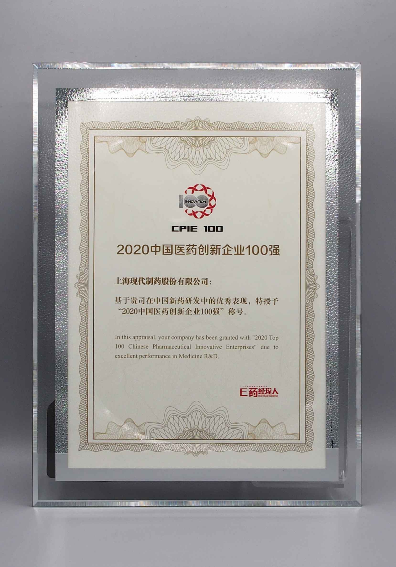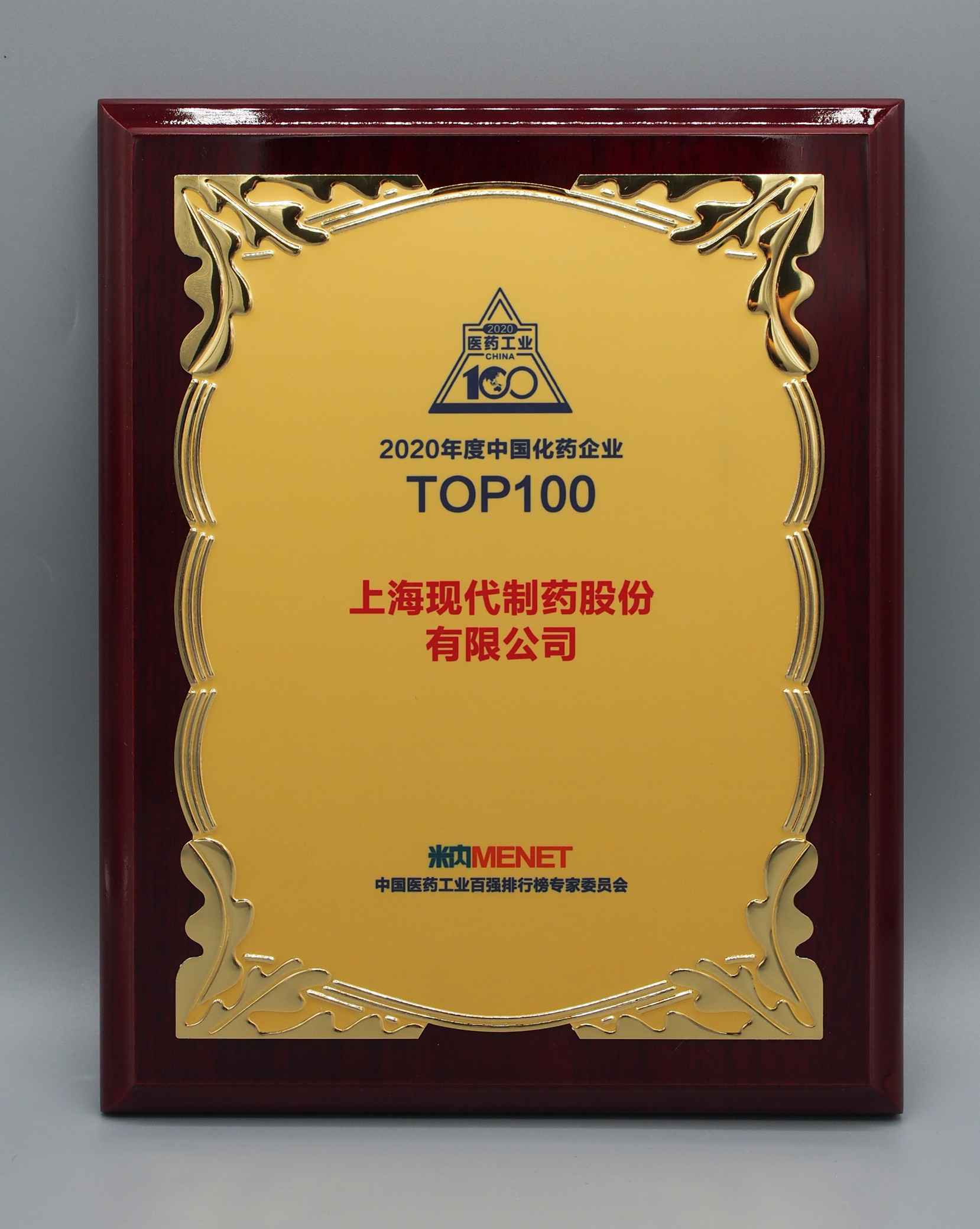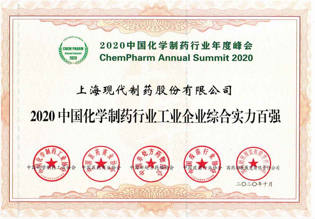 现代-2020中国化学制药行业工业企业综合实力百强 证书...