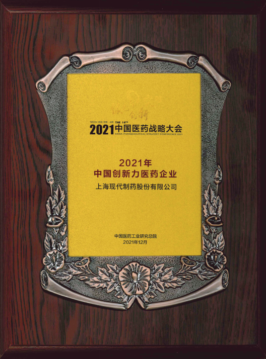 现代-2021中国化学制药行业优秀企业和优秀产品-创新型...