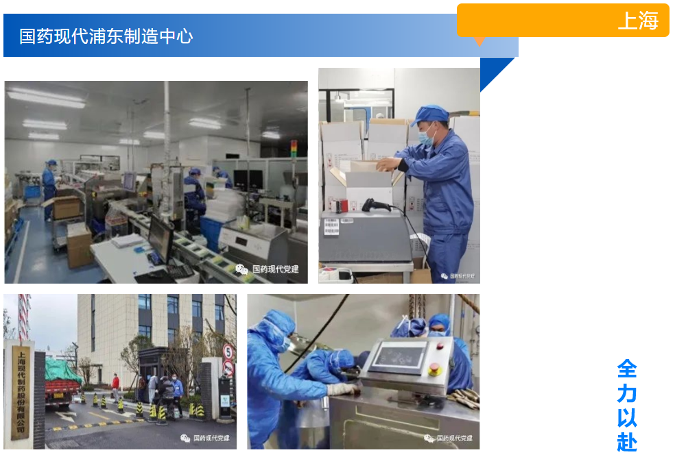 肩负着国药现代大品种硝苯地平控释片等药品的生产保障任务的浦东制造中心,在严格落实疫情防控措施,保障员工身体健康的同时,克服因疫情管控原因部分员工小区封闭人员缺岗近30%的困难,及时调整生产安排,抽调力量补充到重点产品生产线,连续排班,周末无休,安排骨干员工驻厂生产,千方百计组织力量做好重点产品的生产保供。