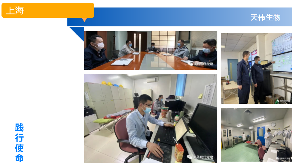 天伟生物领导班子迅速召开专题会议部署工作、制定方案,积极配合政府号召,暂缓生产工作,让人员流动“慢下来”,立即采购行军床、睡袋、食品等物资做好应对。公司党员干部职工克服困难,以公司为家,主动承担厂区巡检、应急维修、安全保障、检验实验等工作,为公司安全有序运行提供保障。这是国药现代人以坚定意志和坚决行动,迎难而上,坚守岗位,在平凡中践行初心和使命。