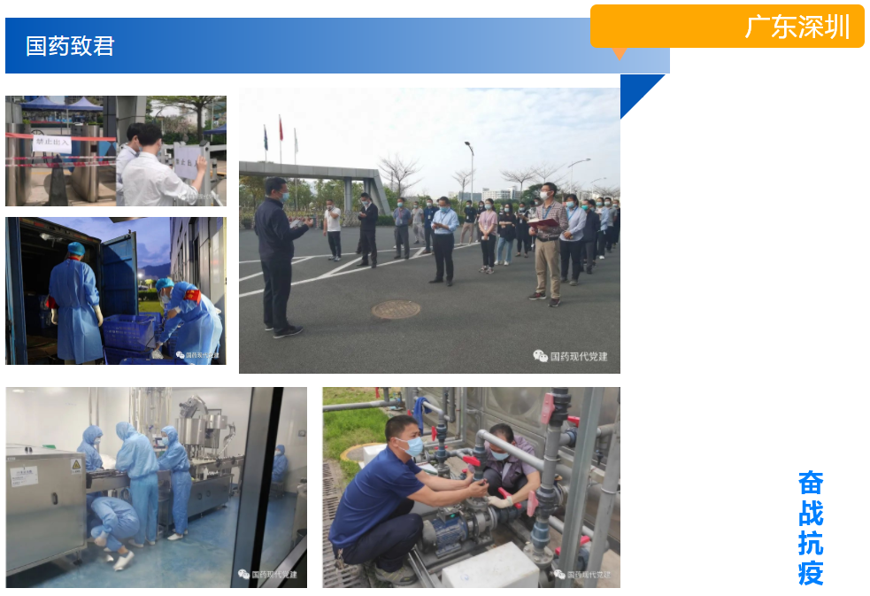 国药致君与时间赛跑,一边加强防疫防控,一边迅速组织完暂定生产前的生产、检验工作。致君坪山液一车间的11名员工、液二车间的10名员工为应对疫情变化,通宵达旦连夜进行灌装生产,两个车间分别完成了2.8万瓶及12.5万支的产量,努力将接下来一周暂停生产的影响降至最小;同时,观澜、坪山两地所有公共系统相关人员三班倒进驻厂区,将确保后续生产顺畅。