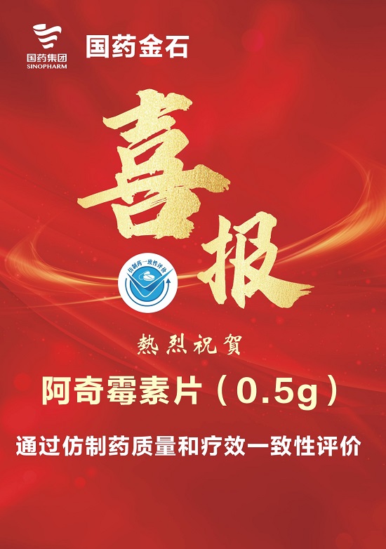 近日,国药集团汕头金石制药有限公司收到国家药品监督管理局核准签发的0.5g阿奇霉素片《药品补充申请批准通知书》,批准该药品通过仿制药质量和疗效一致性评价,至此,国药金石已有6个品种10个品规通过一致性评价。