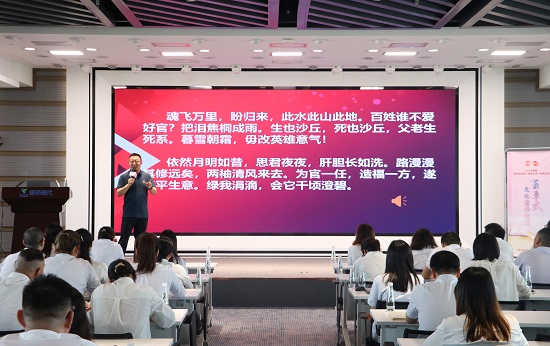 以时代为经纬,以音乐为坐标。依托上海市经信系统工会“经信乐学”菜单式文化配送系列活动平台,特别邀请到上海歌舞团男高音歌唱家、国家二级演员梁彬老师,以史串歌、以歌叙史,带领党员职工朗诵爱国主义诗歌《念奴娇·追思焦裕禄》,追思焦裕禄同志对革命事业的热爱和追求,欣赏民族歌剧《江姐》主题曲《红梅赞》,在红色的旋律中漫步时间长河,唤醒内心深处的红色记忆,与党的伟大历史对话,感悟真理的光芒,体会信仰的力量。
