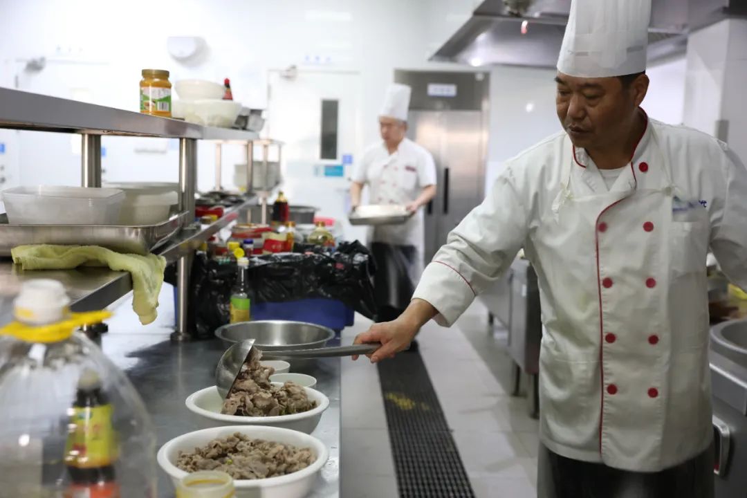 参赛选手全神贯注,从食材准备到烹饪制作,每一个环节一丝不苟,切菜、配菜、点火、下锅,干净利落的一番操作,哗哗的水流声、滋滋的炒菜声,融合为一曲激昂的劳动交响曲。职工们纷纷赞叹,无论是传统的家常菜,还是精心改良的特色菜肴,都无不展现着参赛选手精湛的厨艺和国药现代大家庭的温暖。