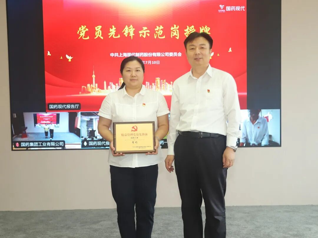 活动现场,国药现代党委副书记、总裁刘勇代表公司党委宣读授牌决定,公司领导班子成员为获评国药现代“党员先锋示范岗”的21个集体和3名个人进行授牌。