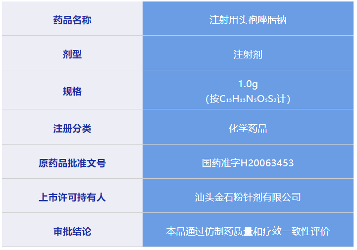 近日,国药现代控股孙公司汕头金石粉针剂有限公司(以下简称国药金石粉针),收到国家药品监督管理局核准签发的《药品补充申请批准通知书》,批准注射用头孢唑肟钠(1.0g)通过仿制药质量和疗效一致性评价(以下简称一致性评价)。