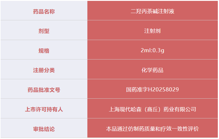 近日,子公司国药哈森收到国家药品监督管理局核准签发的《药品补充申请批准通知书》,批准二羟丙茶碱注射液(2ml:0.3g)通过仿制药质量和疗效一致性评价(以下简称一致性评价)。