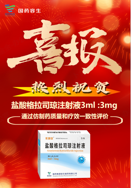 喜讯连连,硕果累累。近日,子公司国药容生收到国家药品监督管理局核准签发的《药品补充申请批准通知书》,批准盐酸格拉司琼注射液(3ml:3mg)通过仿制药质量和疗效一致性评价。