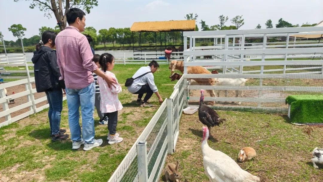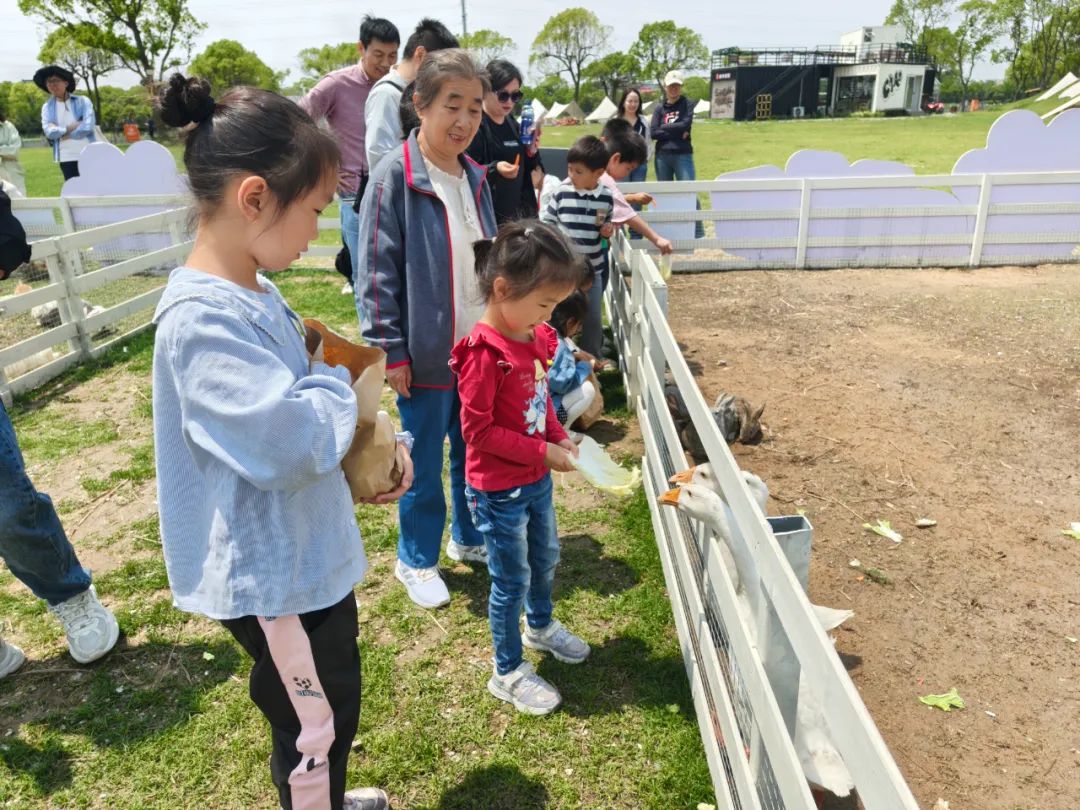 露营区的草坪变成了欢乐的海洋,飞盘在空中划出银色的弧线,孩子们踮起脚尖跳跃接盘,草坪上的身影如小鹿般轻盈灵动;经典游戏 "老鹰捉小鸡" 里,"老鹰" 张牙舞爪地左突右冲,"母鸡" 则张开双臂紧紧护住身后的 "小鸡",孩子们的尖叫与笑声此起彼伏;"老狼老狼几点了" 的稚嫩呼喊中,孩子们随着 "老狼" 的回答一步步靠近,当喊出 "开饭啦" 时,便像小火箭般四散奔跑,童真的快乐在追逐中无限蔓延。部分小朋友欢快地蹲在围栏旁,轻轻将鲜嫩的青草递给毛茸茸的小兔子,看它三瓣嘴快速咀嚼;又抓起玉米粒撒向火鸡群,红脖子的火鸡扑棱着翅膀,咯咯叫着争食。