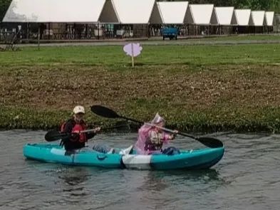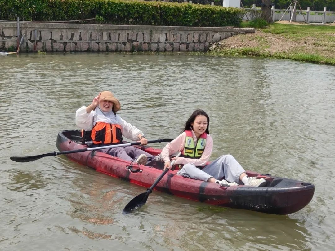 "小船长们,准备启航!"随着教练一声令下,彩色皮划艇如彩虹鱼一只只跃入湖面。孩子们乘坐着皮滑艇,像一群欢快的小鸭子,在家长的陪伴下尽情划桨。微风吹过湖面,小艇像陀螺般在水面打转,溅起的水花惹得岸上的家长笑弯了腰。