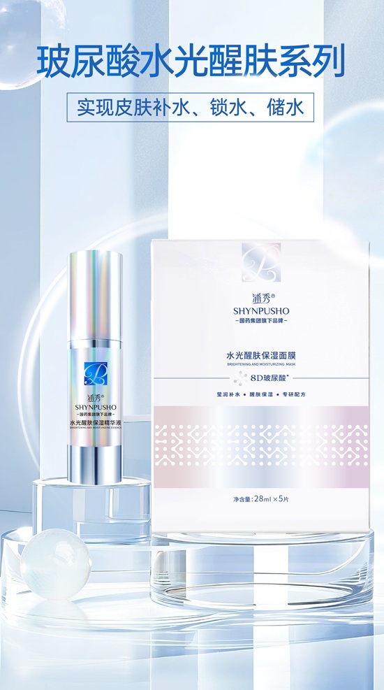 该系列以8种不同分子量的玻尿酸为主要宣传点,实现皮肤补水、锁水、储水,产品包括玻尿酸水光醒肤精华液、玻尿酸水光醒肤面膜,适合皮肤缺水干燥的人群。