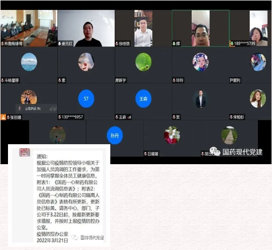 国药一心防疫防控领导小组带领防疫防控办公室全员开启全天候备战模式。从完善公司防控应急预案,到收集整理转发各级防控政策;从统筹协调各责任主体落实防控任务,到深入群众了解并帮助解决封闭管控过程中存在的困难;从精细化开展流调,到强化正向舆论导向,每一次决策部署落实都扎实有效。