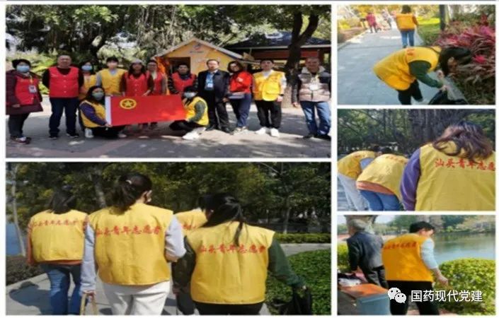 头孢事业部、青霉素、管理部门事业部组织团员青年志愿者清理园区周边绿化带垃圾,为员工提供了自行车维修保养、义务理发等惠民服务。同时对大同市政务大厅天桥栏杆及公交站牌标识、板凳进行清洁,为改善市容市貌、方便市民出行贡献国药力量。江苏威奇达通过印发长江环境保护宣传册,组织团员青年捡拾长江岸边东布洲长滩公园游客遗留垃圾,增强员工环保意识,带动周边居民和游客环保理念,保护长江两岸自然风光,引领新时代志愿服务新风尚。